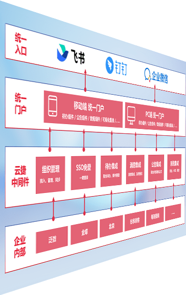 对协作平台提供支持服务,,,,支持企业应用与协作平台对接,,,包含组织同步、、、消息集成、、待办集成等。。。。支持目前主流的协作平台:钉钉、、、、企微和飞书。。